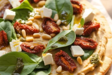 I keep going back to this simple idea: creamy hummus and bright sun dried tomatoes on warm flatbread, something that looks easy but tricks you into lo