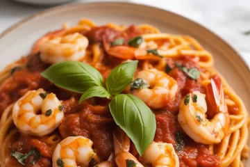Garlic Shrimp Pasta In Red Wine Tomato Sauce Recipe