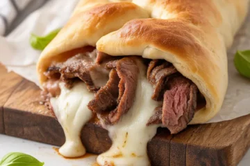 I love a sandwich that pretends to be a pizza, it’s my quick, slightly messy answer to weeknight hunger. My Mozzarella Cheesesteak Stromboli uses thin