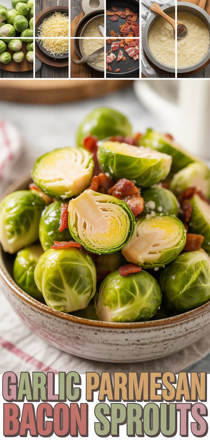 Creamy Garlic Parmesan Brussel Sprouts With Bacon Recipe