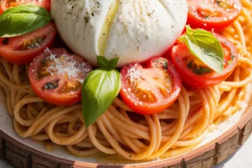 I love a weeknight dish that looks like I fussed all evening when really I threw it together. This Summer Weeknight Burst Tomato Burrata Pasta sneaks