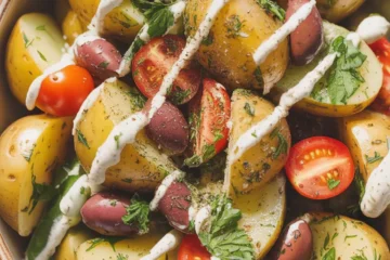 I love a salad that looks humble but surprises you. This Easy Mediterranean Potato Salad caught me off guard the first time I tossed warm baby potatoe